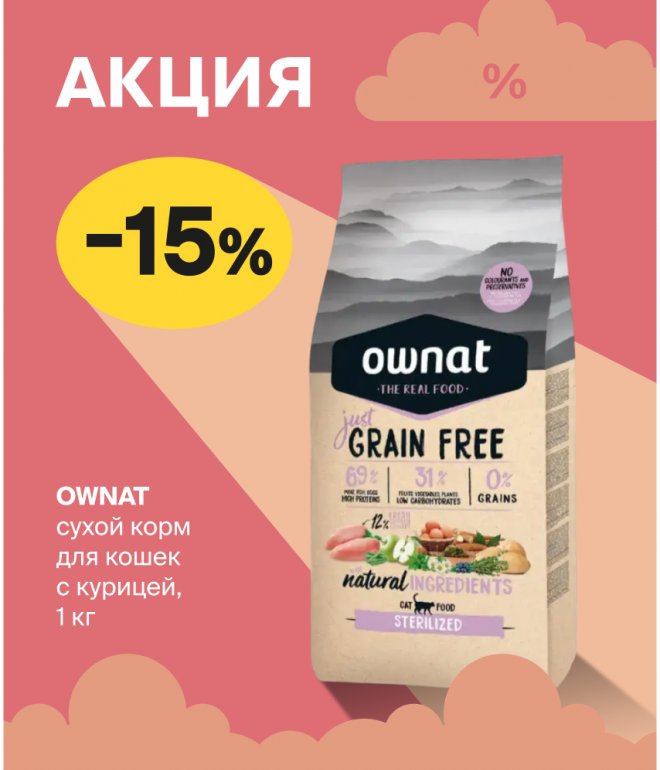 Приобретайте сбалансированный полнорационный премиальный корм Ownat для ваших любимцев со скидкой: