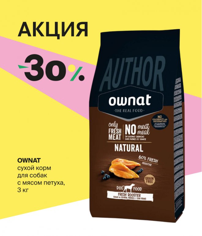 Ownat Author — изысканный сухой корм с настоящим свежим мясом петуха теперь по суперцене!