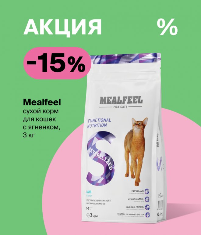 Только с 1 по 28 февраля — акция на премиальный сухой корм для кошек Mealfeel!